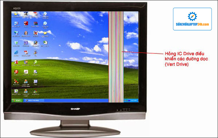 - Màn hình máy tính hỏng IC Driver điều khiển các đường dọc