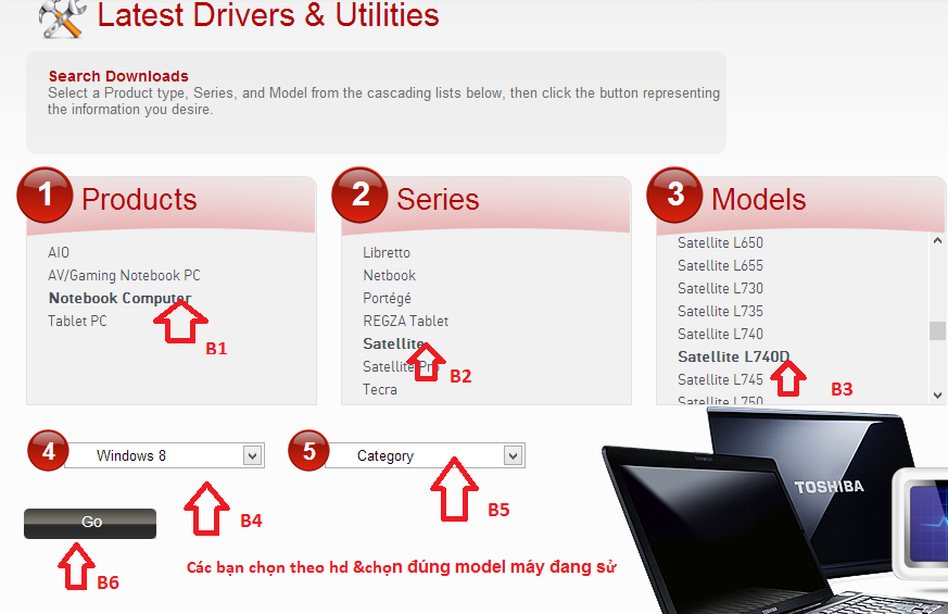 Toshiba  các bạn cũng và địa chỉ sau  http://toshiba-asia.com/support/drivers