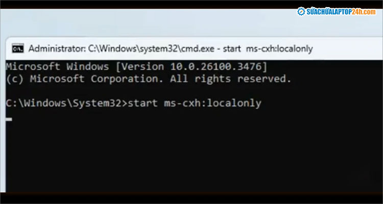 Bước 3: Nhập lệnh sau và nhấn Enter: start ms-cxh:localonly