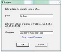 Nếu bạn sử dụng máy tính tại những nơi an toàn mà không lo ngại về nguy cơ mất máy, để Lalarm không phát báo động, bạn lập những Zone (vùng an toàn) bằng cách chọn thẻ Zone > chọn Add > Show current IP address > điền địa chỉ IP của mạng hiện tại > nhấn OK để hoàn tất.