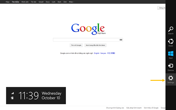 Bước 3: Khi bạn đã thấy thanh Charm, nhấp chuột hoặc chạm tay vào Setting.