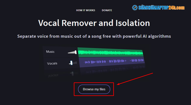 Bước 1: Vào trang web Vocal Remover, nhấn chọn Browse my files ở phía dưới trung tâm trang, tại đây bạn sẽ lựa chọn file nhạc cần lấy beat từ máy tính.