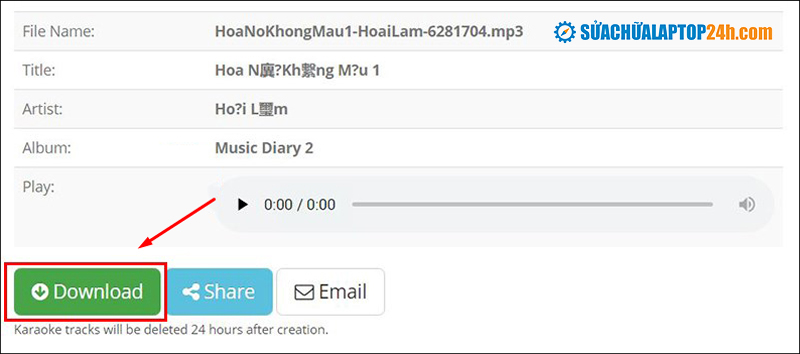 Nhấn chọn Dowload để tải bản nhạc đã tách lời về