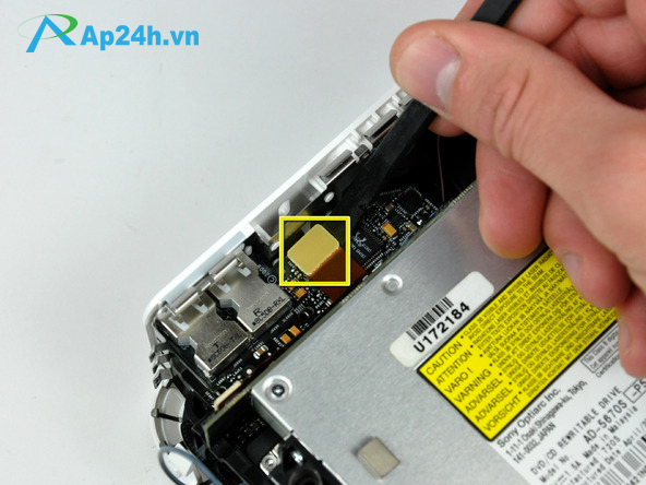 Bước 10: Sử dụng phần cuối bằng phẳng của một chiếc banh kim loại để nâng lên nối âm thanh cáp băng lên khỏi bo mạch âm thanh.