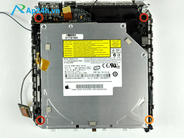 Các vít ở góc dưới bên phải của hình ảnh này được thụt vào sâu trong khung nội bộ và dài hơn ba ốc vít khác. Một đèn pin và một trợ giúp tua vít mỏng cho việc gỡ bỏ.