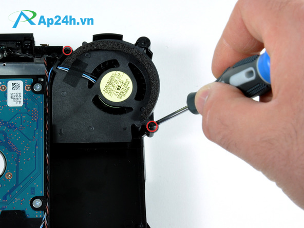 Bước 13: Tháo 2 ốc vít Phillips bảo vệ các quạt từ khung nội bộ.