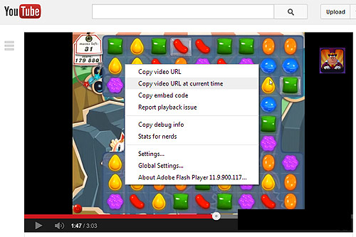 Nếu muốn chia sẻ một video clip trên YouTube cho người khác và muốn video ấy được phát ngay từ giây thứ 30 ngay khi dán địa chỉ vào thanh Address, bạn đổi đường dẫn YouTube từ "youtube.com/watch?v=xyz" sang "youtube.com/watch?v=xyz#t=30".