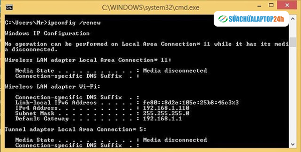 Trong trường hợp bạn không có quyền quản lý bộ phát thì hãy thử cách làm mới lại địa chỉ IP.