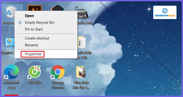 Bước 1: Để xóa file vĩnh viễn bằng cách này bạn hãy click chuột phải vào Recycle Bin chọn Properties.