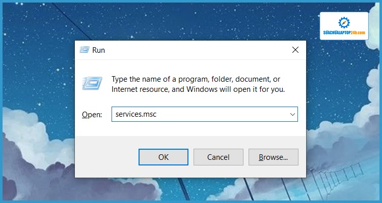 Bước 1: Bạn hãy nhấn tổ hợp phím Windows + R để mở hộp thoại Run rồi nhập lệnh “services.msc” nhấn Enter để tìm kiếm.