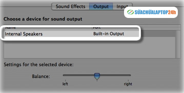 Bước 3: Mở bảng thiết lập Sound và chọn thẻ Output, sau đó chọn Internal Speakers