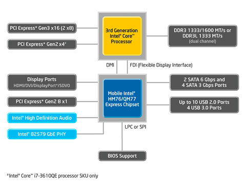 Intel HM76 Express Chipset là nền tảng mới nhất, ra đời tháng 4/2012 được Intel xếp hàng “Performance” giúp hiệu năng hệ thống mạnh hơn, khai thác tối đa khả năng của CPU, hỗ trợ cả vi xử lý Core I thế hệ 3 và thế hệ 2. Ngoài ra, đây cũng nền tảng đầu tiên được hỗ trợ chính thức USB 3.0 với tốc độ nhanh gấp 10 lần USB 2.0 trước đó. Khả năng hỗ trợ hiển thị 3 màn hình độc lập (kết nối cùng lúc với màn hình chính và màn hình phụ qua cổng VGA và HDMI).