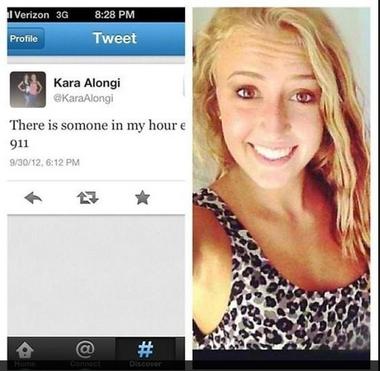 Kara Alongi đã gửi lời cầu khẩn tới các followers của cô trên Twitter đêm hôm Chủ nhật tuần qua hãy gọi 911 và nói rằng "có một người nào đó đang xuất hiện trong nhà tôi". Ngay lập tức, người dùng Internet đã tập trung sự chú ý tới dòng tweet ngắn ngủi này. Không mất nhiều thời gian để từ khóa #HelpFindKara trở thành xu hướng trên Twitter, bên cạnh đó, 34.000 người đã retweet lời cầu khẩn được giúp đỡ này của Kara để tăng cường sự chú ý của dân chơi Twitter cũng như các mạng xã hội khác về vụ việc.