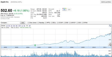 Cổ phiếu Apple đã lọt qua mốc 500 USD lần đầu tiên trong gần 1 năm qua.