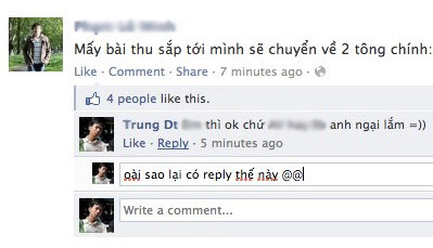 "Chúng tôi đang thử nghiệm để cho phép người sử dụng comment theo cách mới, cũng như bổ sung thêm lựa chọn "Reply" cho từng bình luận", phát ngôn viên của Facebook là Meredith Chin đã khẳng định với Mashable.