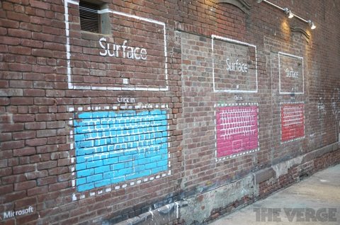 The Verge cho biết, mặc dù phải tới 26/10 Microsoft mới chính thức trình làng tablet Surface chạy Windows RT nhưng hãng này đã bắt đầu chiến dịch quảng cáo tại Mỹ. Ba chiếc tablet Surface màu sắc khác nhau đã được vẽ bằng phấn lên một bức tường ở thành phố New York. Các thông tin về giá bán của mẫu tablet này vẫn chưa được tiết lộ.