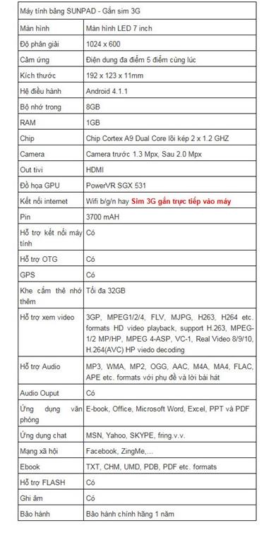 Sunpad không những là 1 máy tính bảng đầy đủ tính năng, mà còn như 1 điện thoại, nên rất thuận tiện cho người dùng thường hay di chuyển.