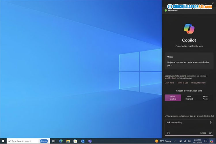 Ngay sau khi Copilot được cài đặt, bạn có thể khởi động nó thông qua biểu tượng Copilot mới trên thanh tác vụ Windows 10. Sau đó, một cửa sổ trò chuyện sẽ mở ra để bạn có thể nhập yêu cầu của mình. Bạn cũng có thể sử dụng Copilot bằng giọng nói thông qua biểu tượng micrô trong cửa sổ trò chuyện.