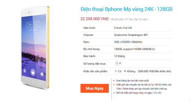 Phiên bản Bphone mạ vàng bất ngờ đạt doanh số ngoài kỳ vọng